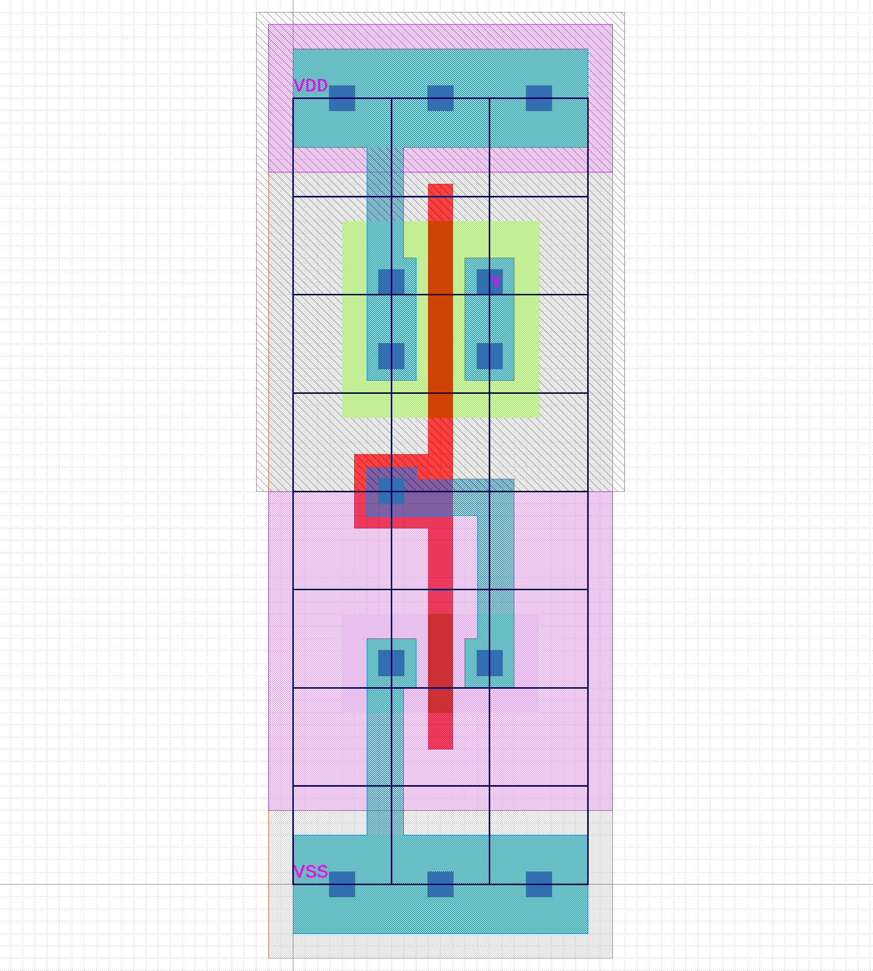 In this part, we will be implementing the six views for the standard-cell inverter. Remember that in addition to being DRC and LVS clean, your inverter must also follow all of the rules which make standard cells "standard":