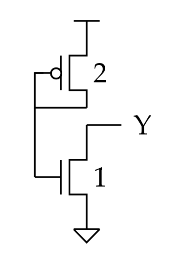 - Standard transistor positions and orientation (PMOS at top, NMOS at bottom, vertical gates)