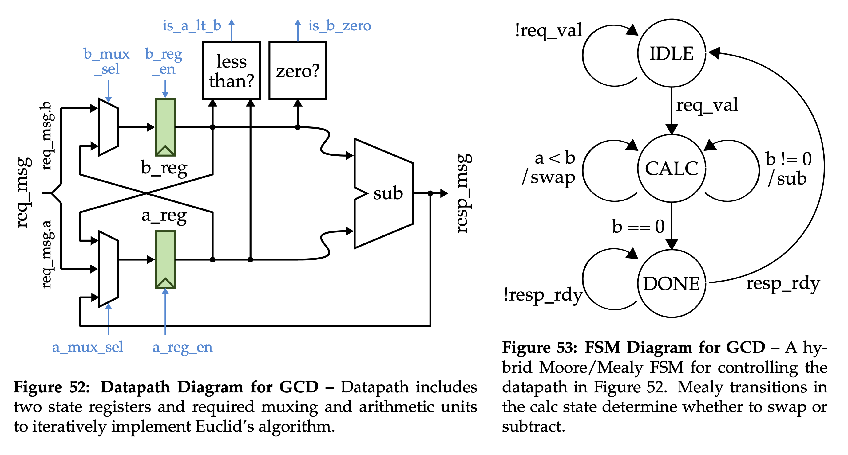 The stand-alone GCD unit uses latency insensitive interfaces and a clean datapath/control split.